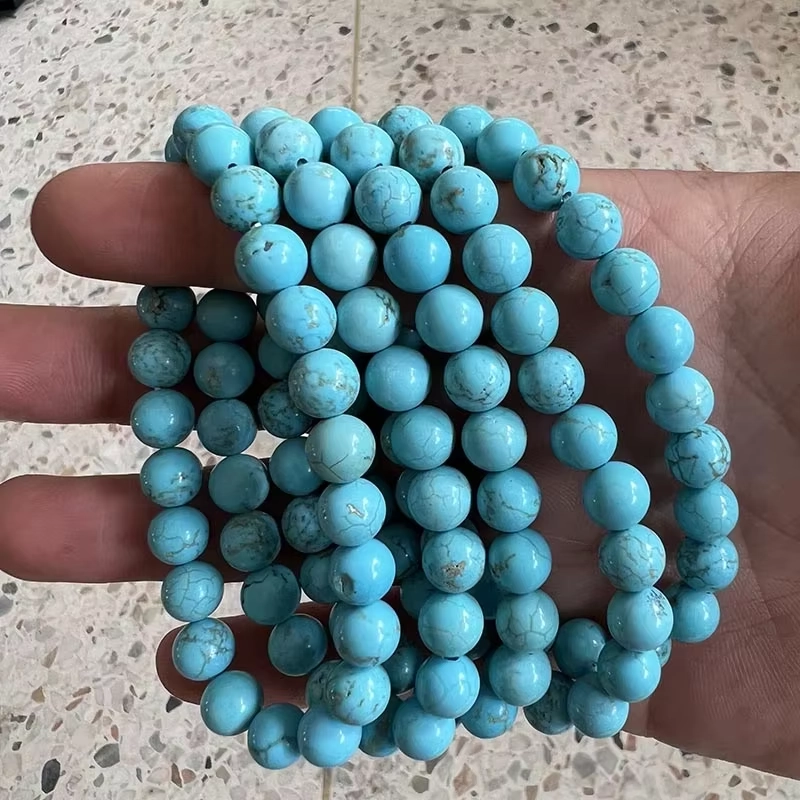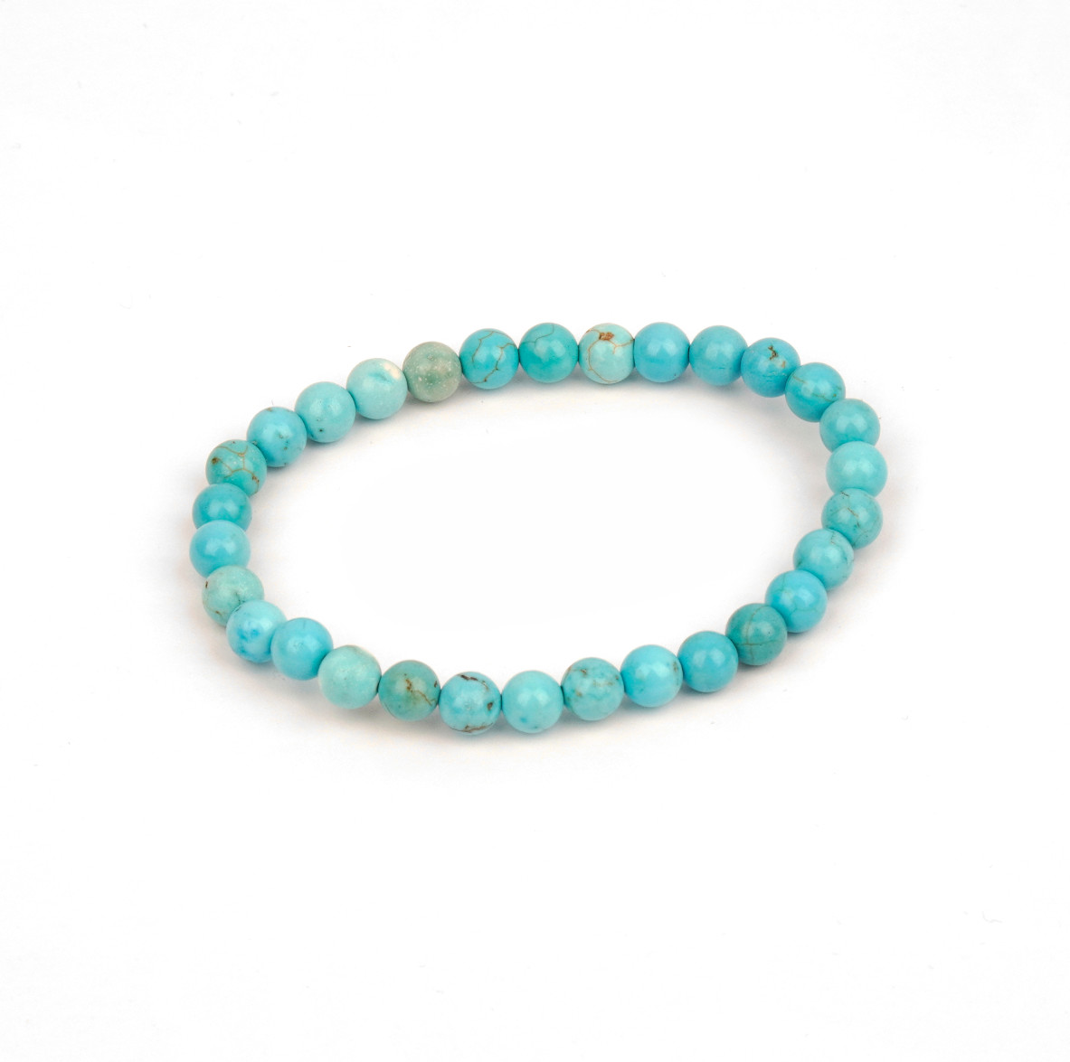 Bransoletka składa się z drobnych, polerowanych koralików turkusu w odcieniach błękitu z delikatnymi, naturalnymi przebarwieniami. Jej klasyczny, uniwersalny design sprawia, że pasuje do każdej stylizacji, dodając jej subtelnego koloru i pozytywnej energii.