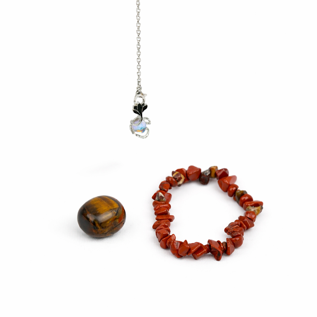 Zestaw został stworzony z myślą o Wadze, której sprzyjają kamień księżycowy, tygrysie oko i czerwony jaspis. Ich połączona energia wspiera harmonię, pewność siebie i odwagę – cechy, które pozwalają Wadze rozwijać relacje i działać w zgodzie z sercem.