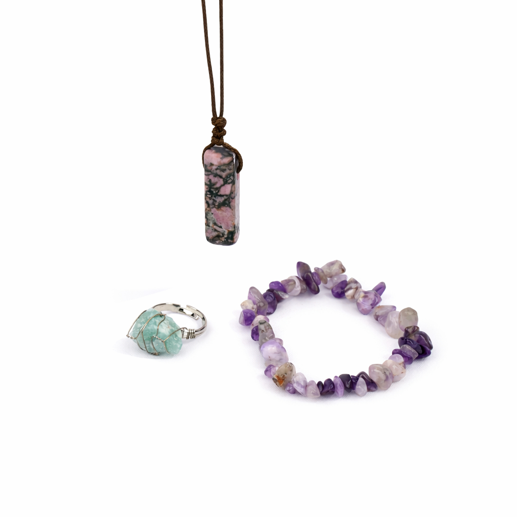 Zestaw został stworzony z myślą o Wodniku, któremu szczególnie sprzyjają rodonit, amazonit i ametyst. Ich wspólna energia wzmacnia intuicję, niezależność i twórczy potencjał, będące kluczowymi cechami tego znaku.