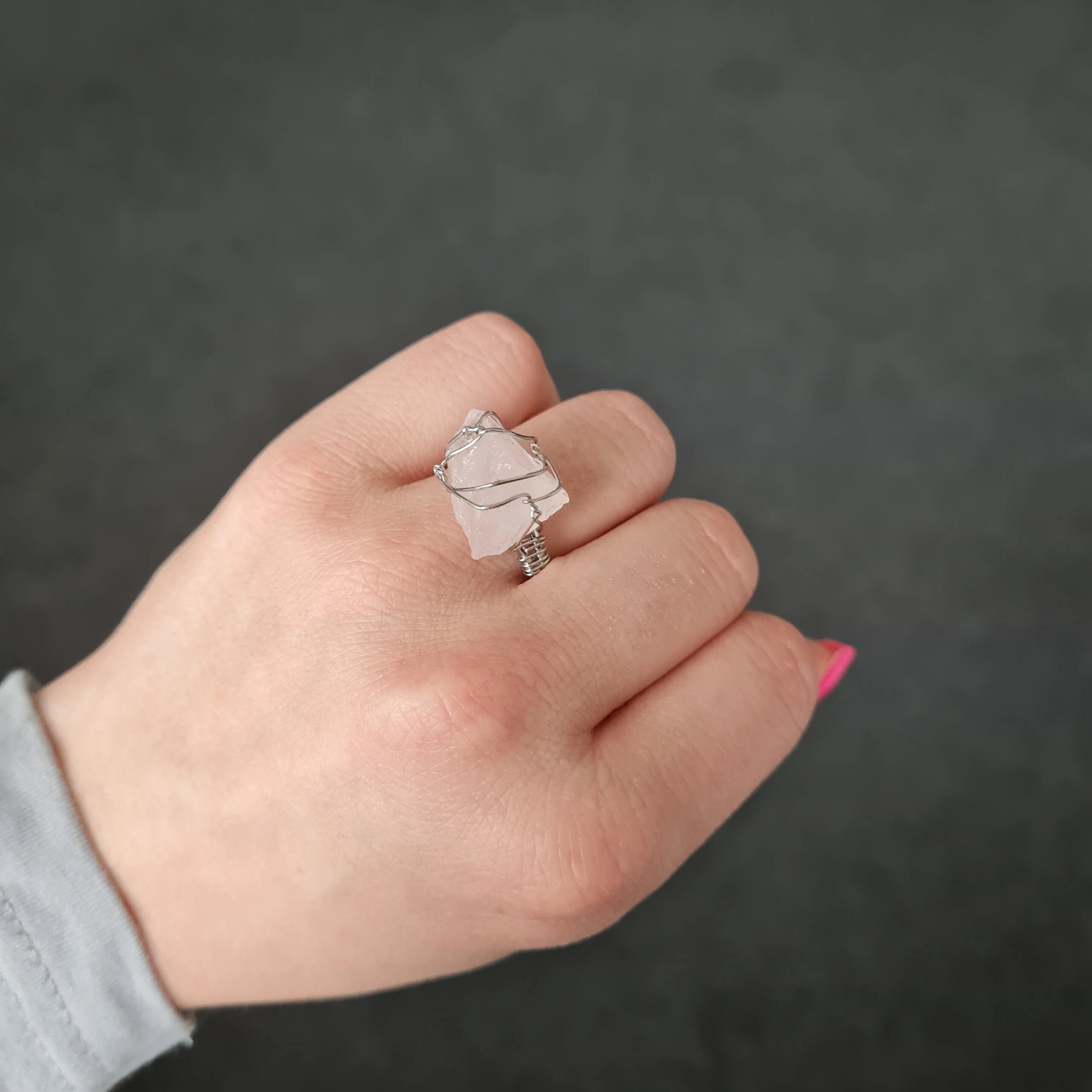Pierścionek z różowym kwarcem – naturalny – miłość i harmonia